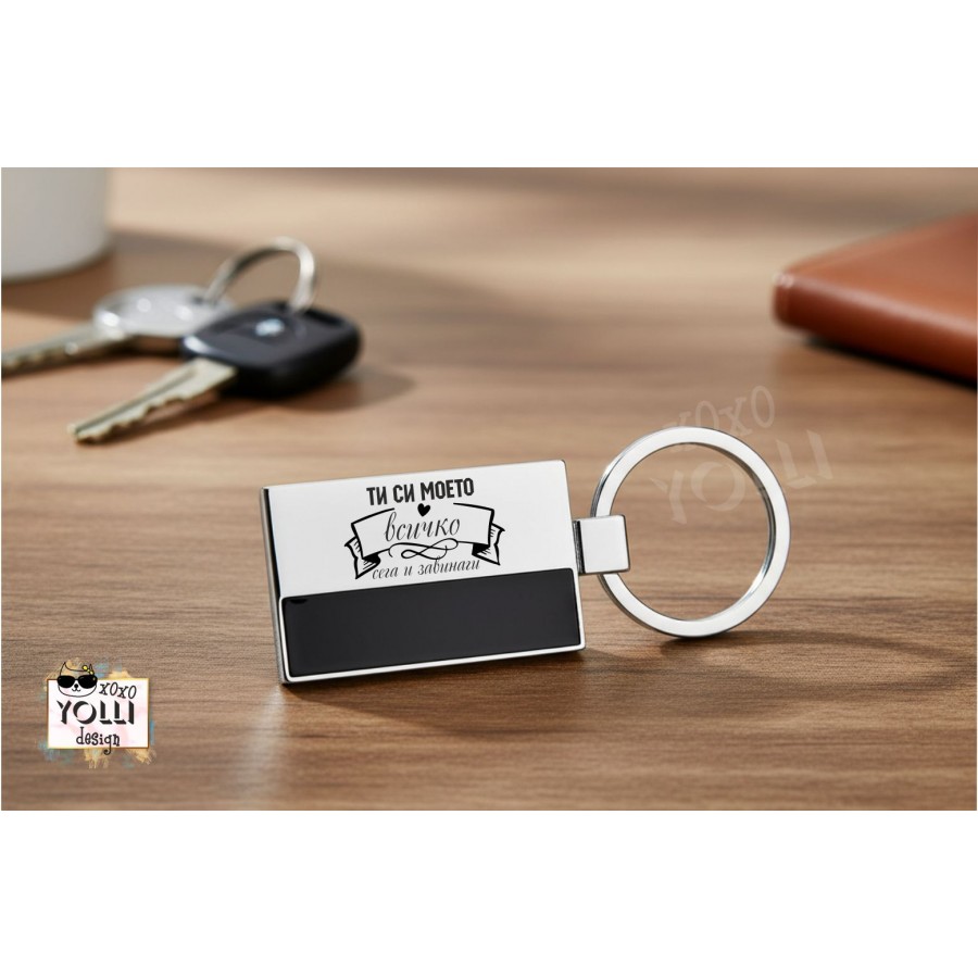 Метален ключодържател с лазерно гравирано послание за любим човек.