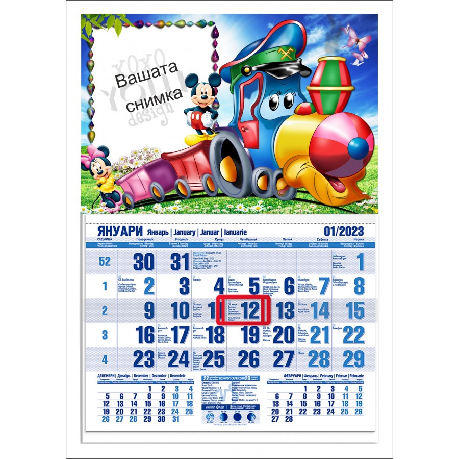 Календар със снимка и любим герой. Изберете този стилен, функционален и компактен работен календар. Предназначен за закачане на стена.