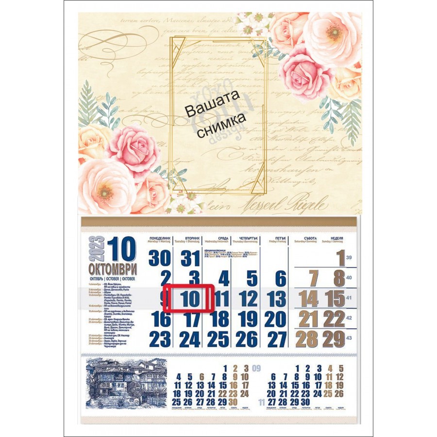 Календар със снимка с нежни цветя. Изберете този стилен, функционален и компактен работен календар. Предназначен за закачане на стена.