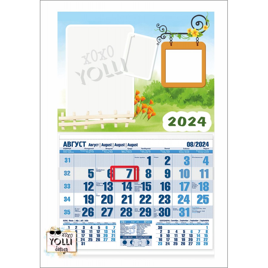 Календар с място за снимка. Изберете този стилен, функционален и компактен работен календар. Предназначен за закачане на стена.