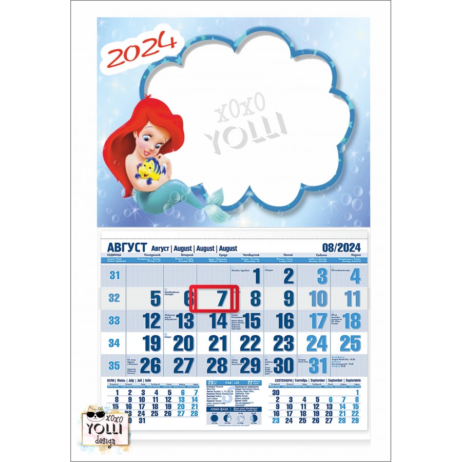 Календар с място за снимка. Изберете този стилен, функционален и компактен работен календар. Предназначен за закачане на стена.