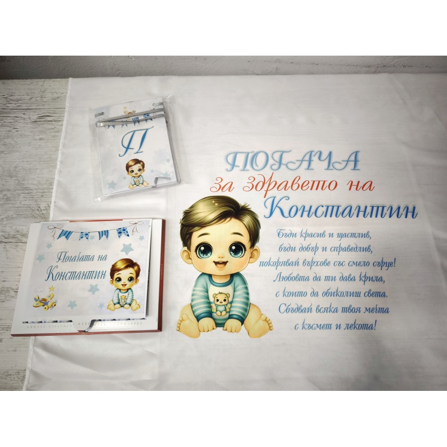 Затова създадохме тези прекрасни платна за завиване на бебешката погача, които да красят празника и след това да са ти мил спомен към този вълнуващ момент.